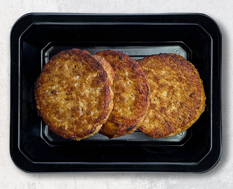 - Peel back film and portion the amount of turkey burgers that you would like for your meal